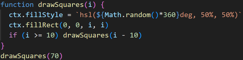 In this example, the drawGrid procedure is waiting on the drawSquares procedure - which itself is waiting on the fillRect function. In terms of memory, the stack is the place in memory where the current procedures are stored. Just like any other form of memory, the stack can run out of space. If unaddressed, this might result in other memory getting overwritten and all sorts of errors, called a stack overflow. Luckily, most computers have ways of detecting when the stack is overflowing and stops the program.