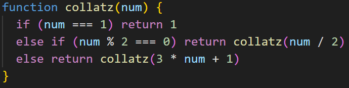 You might think that it always ends up returning 1 for positive integers. And mathematically, you might be correct - it's an unsolved problem. But if you enter, say, 670617279, too much recursion is required to reach the final answer, so it throws an error. For this kind of reason, recursion is most useful when you have a good idea of how deep the function will go. For more info on recursion click here.